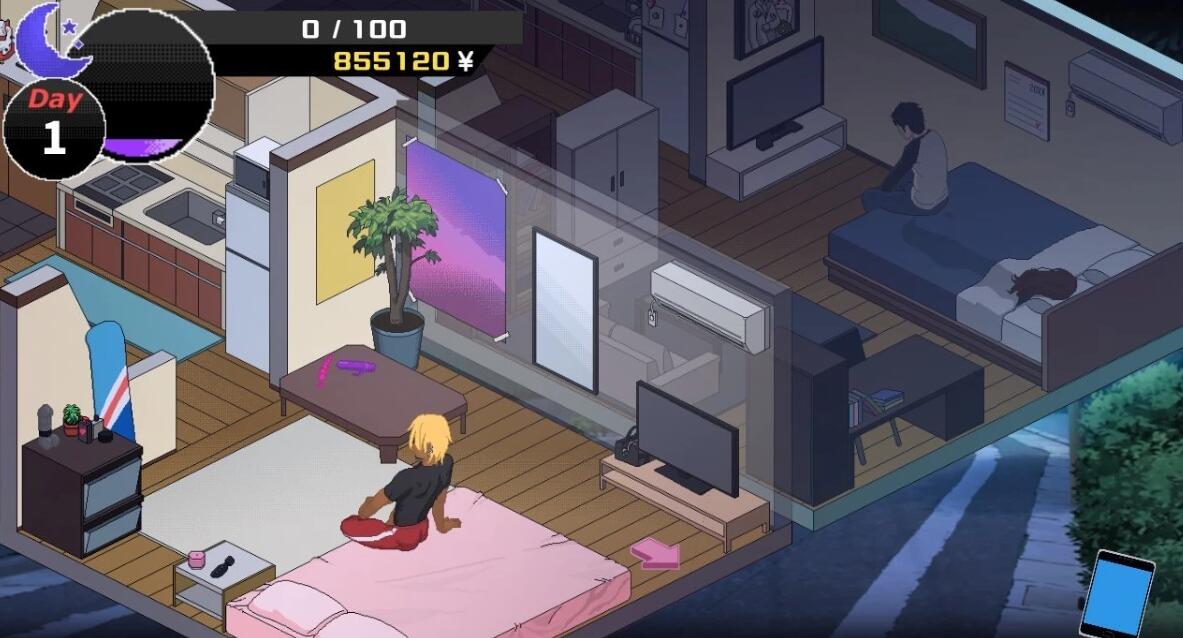 -除了召唤女主在家嘿嘿,还可以外出打工赚钱,购买各种奇怪的大人玩具,打工有两种,都是非常有趣的小游戏,异种是分红蓝鸡仔,另一种则是非常社保的エロ按摩师玩法,绝对赤鸡!