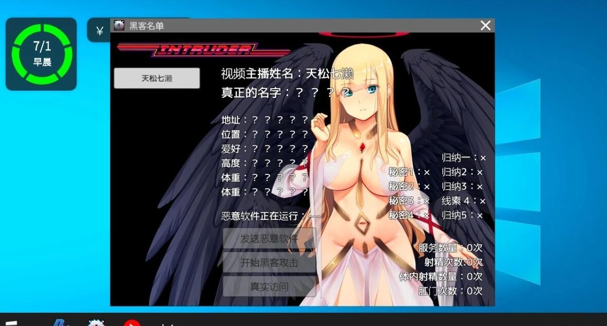 主角通过给女主播发送嗨客软件(下面商店系统会讲)来入侵电脑 玩小游戏来获取女主播信息/秘密/诱导