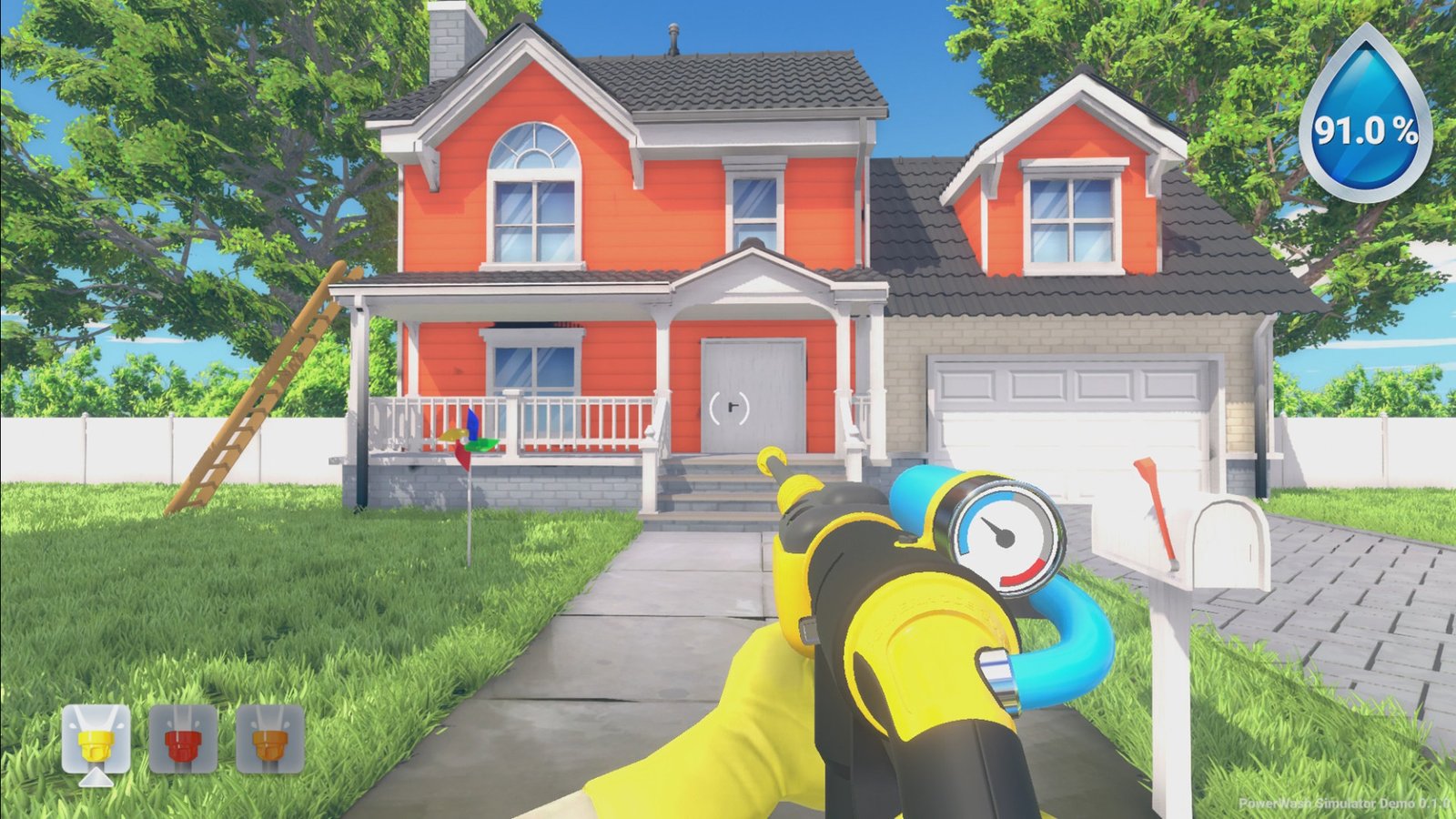 《强力清洗模拟器(PowerWash Simulator)》是一款十分有趣的休闲解压玩法的游戏,玩家可以使用高压洗净机和几种喷嘴,将附着在各种各样的地方的顽固污渍清除干净,让舒缓的高压水声洗去你的烦恼。